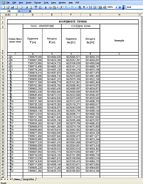 • Transformacija koordinata i crteža u susednu zonu