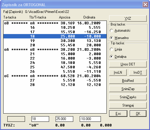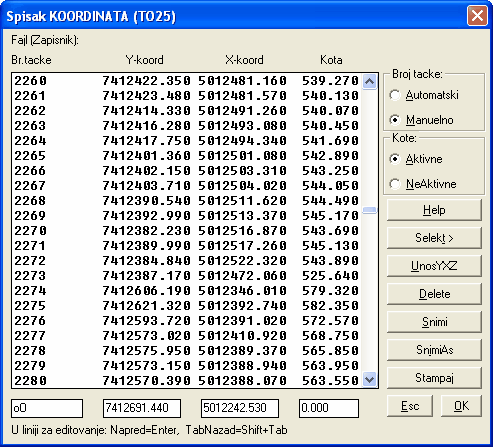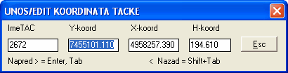 • Direktno unošenje i editovanje koordinata pojedinačno i kroz Tabelu