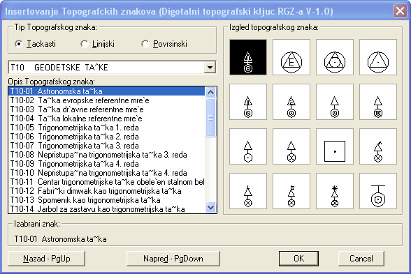 • Insertovanje Topografskih znakova iz RGZ ključa, ličnog ili nekog drugog ključa